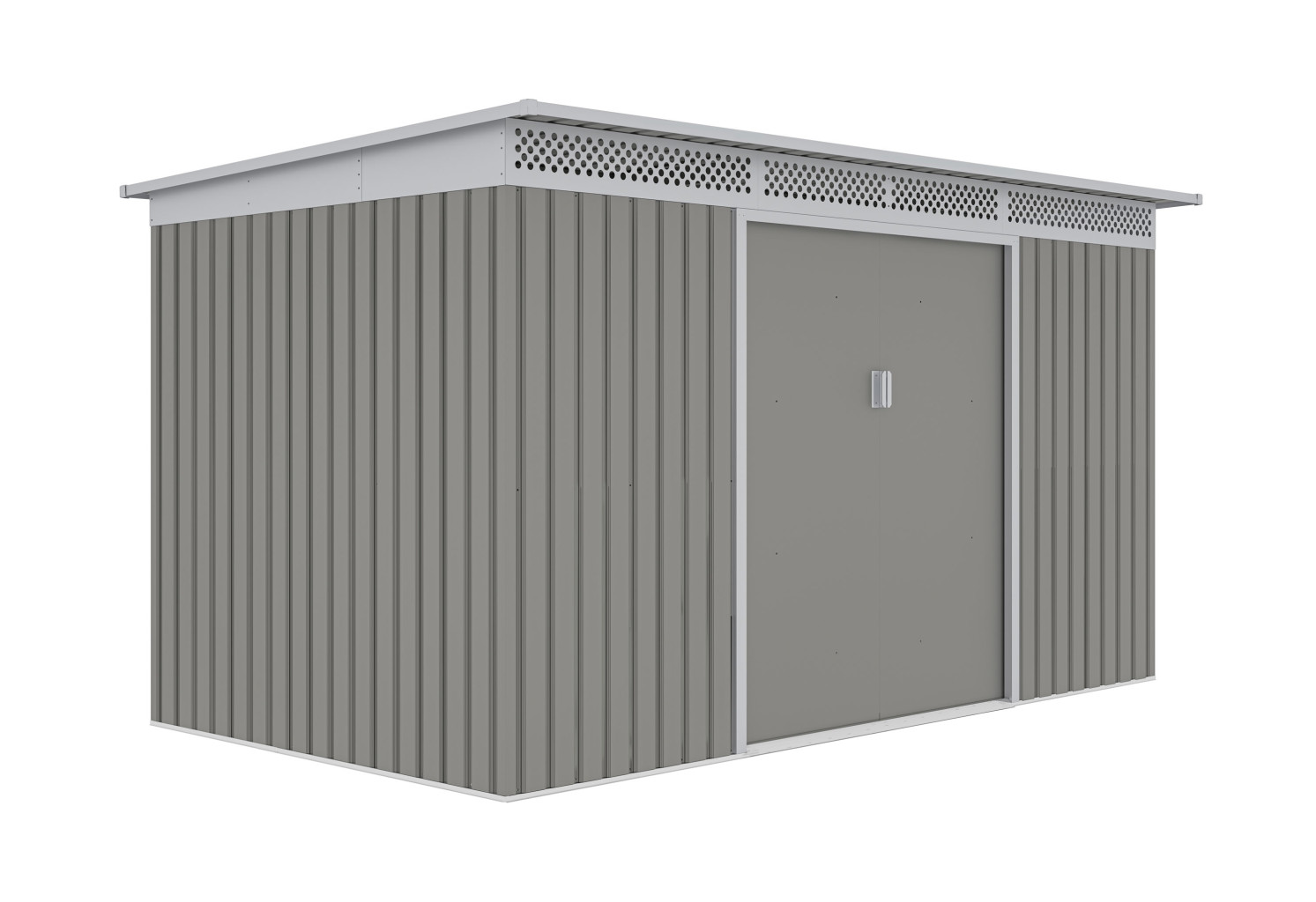 Zahradní domek GRAH 700 má dvoukřídlé dveře o celkové šířce 138 cm. Vstup do domku je tak opravdu pohodlný, i když nesete nebo vynášíte objemnější věc.