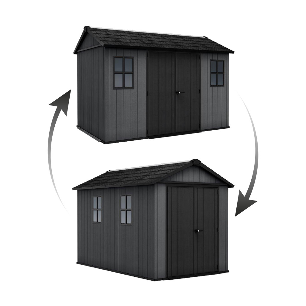 Domek sestavíte 2 různými způsoby podle svých vlastních představ. Záleží jen na vás, na jakou stranu umístíte dveře a okna. Do interiéru navíc snadno namontujete skříně, knihovny nebo police na nářadí. Tím rozšíříte úložný prostor zahradního domku.