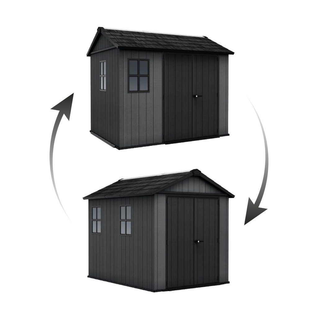 Domek sestavíte 2 různými způsoby podle svých vlastních představ. Záleží jen na vás, na jakou stranu umístíte dveře a okna. Do interiéru navíc snadno namontujete skříně, knihovny nebo police na nářadí. Tím rozšíříte úložný prostor zahradního domku.