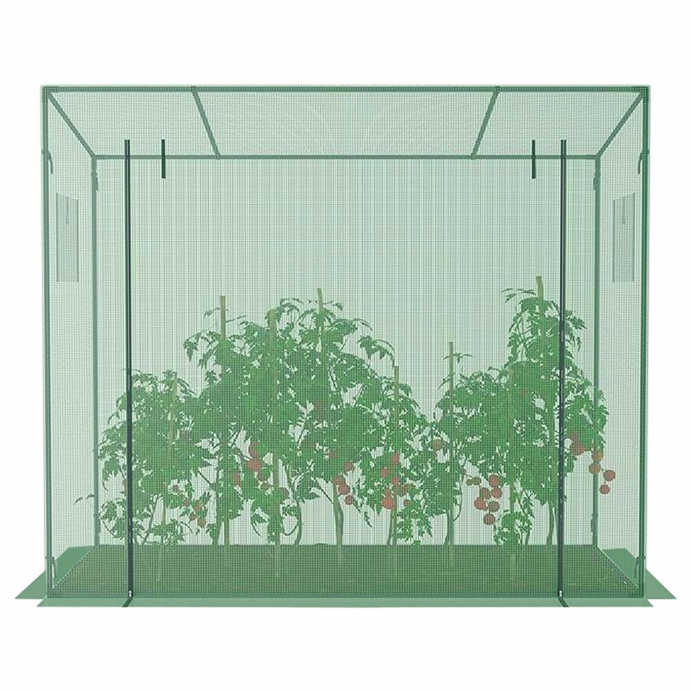 Perfektní pomocník na zahradu nebo balkon pro pěstování zeleniny. Fóliovník na rajčata, okurky, papriky a další plodiny poskytuje optimální podmínky pro jejich růst. Vysoce odolná fólie s UV ochranou, zesílená konstrukce se dvěma výztuhami ve stropě zajišťuje neobyčejnou stabilitu. Větrací síťovaná okna podporují správnou cirkulaci vzduchu, široký vchod s roletkou a zipem umožňuje snadný přístup. Obvodové kotvy se sňurkou zajistí pevné uchycení k zemi.