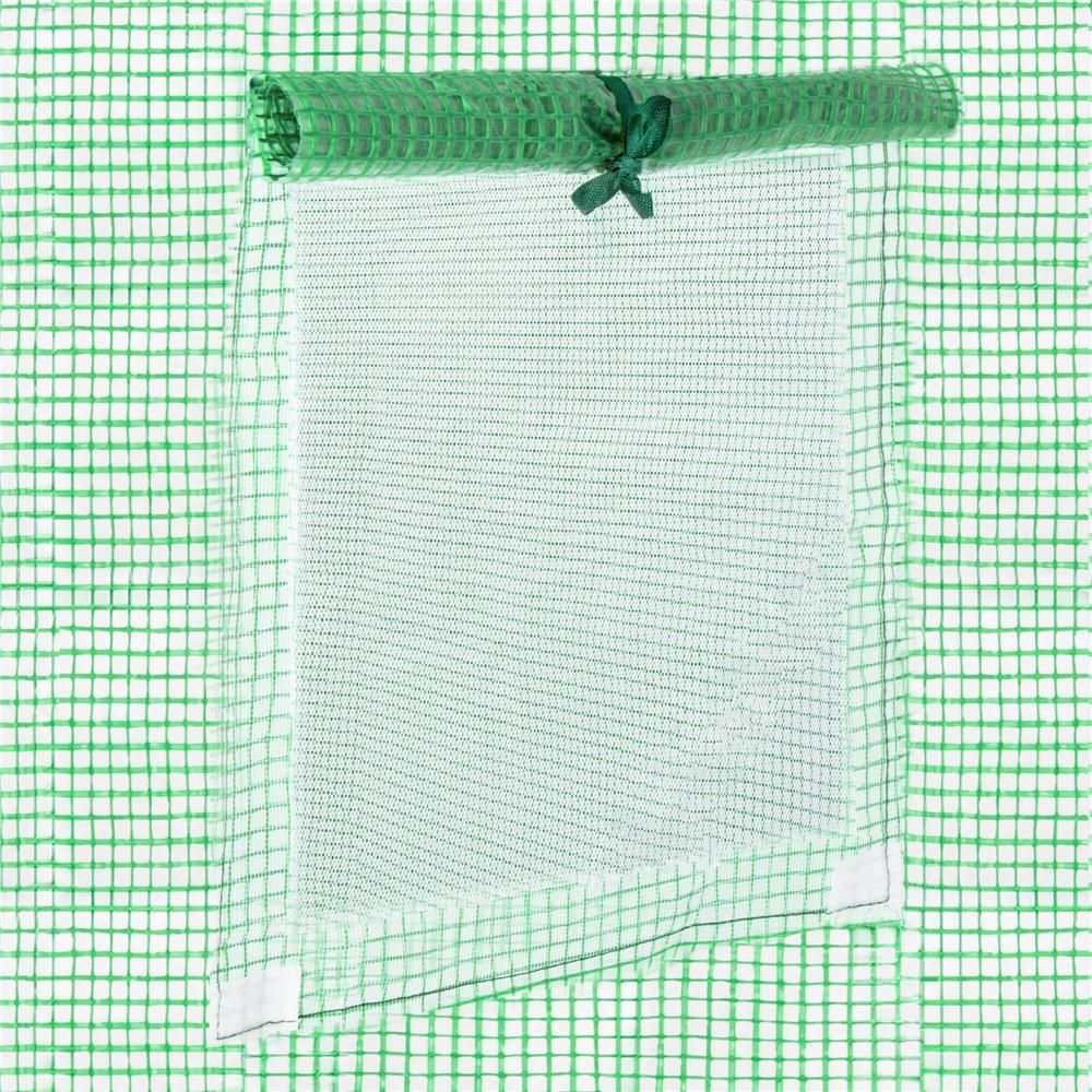 Praktické větrací síťovaná okna umožňují optimální cirkulaci vzduchu a regulaci vlhkosti. Široký vchod s roletkou a zipem usnadňuje přístup do fóliovníku, zatímco obvodové kotvy do země zajišťují pevné uchycení k podkladu. Tento fóliovník je skvělým pomocníkem pro každého zahrádkáře, který chce mít zdravou a bohatou úrodu po celou sezónu.