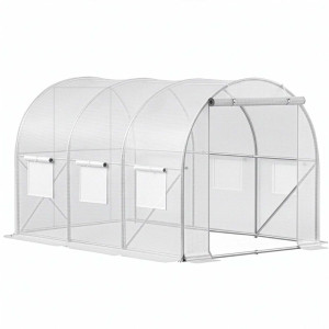 Perfektní pomocník na zahradu pro pěstování zeleniny. Fóliovník na rajčata, okurky, papriky a další plodiny poskytuje optimální podmínky pro jejich růst. Vysoce odolná fólie s UV ochranou, zesílená konstrukce se třemi výztuhami ve stropě a dvěma na bocích zajišťuje neobyčejnou stabilitu. Větrací síťovaná okna podporují správnou cirkulaci vzduchu, široký vchod s roletkou a zipem umožňuje snadný přístup. Obvodové kotvy se sňurkou zajistí pevné uchycení k zemi.