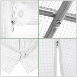 Praktické větrací síťovaná okna umožňují optimální cirkulaci vzduchu a regulaci vlhkosti. Široký vchod s roletkou a zipem usnadňuje přístup do fóliovníku, zatímco obvodové kotvy do země zajišťují pevné uchycení k podkladu. Tento fóliovník je skvělým pomocníkem pro každého zahrádkáře, který chce mít zdravou a bohatou úrodu po celou sezónu.