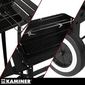 Dotaz na produktUž vás nebaví grily, které se po sezóně kymácejí a jejichž čištění po grilování trvá věčnost? Zahradní gril KAMINER s rožněm a přídavným horním roštem vám poskytne pohodlné a stabilní grilovací místo a udrží vaše příslušenství uspořádané – od prvního zapálení.