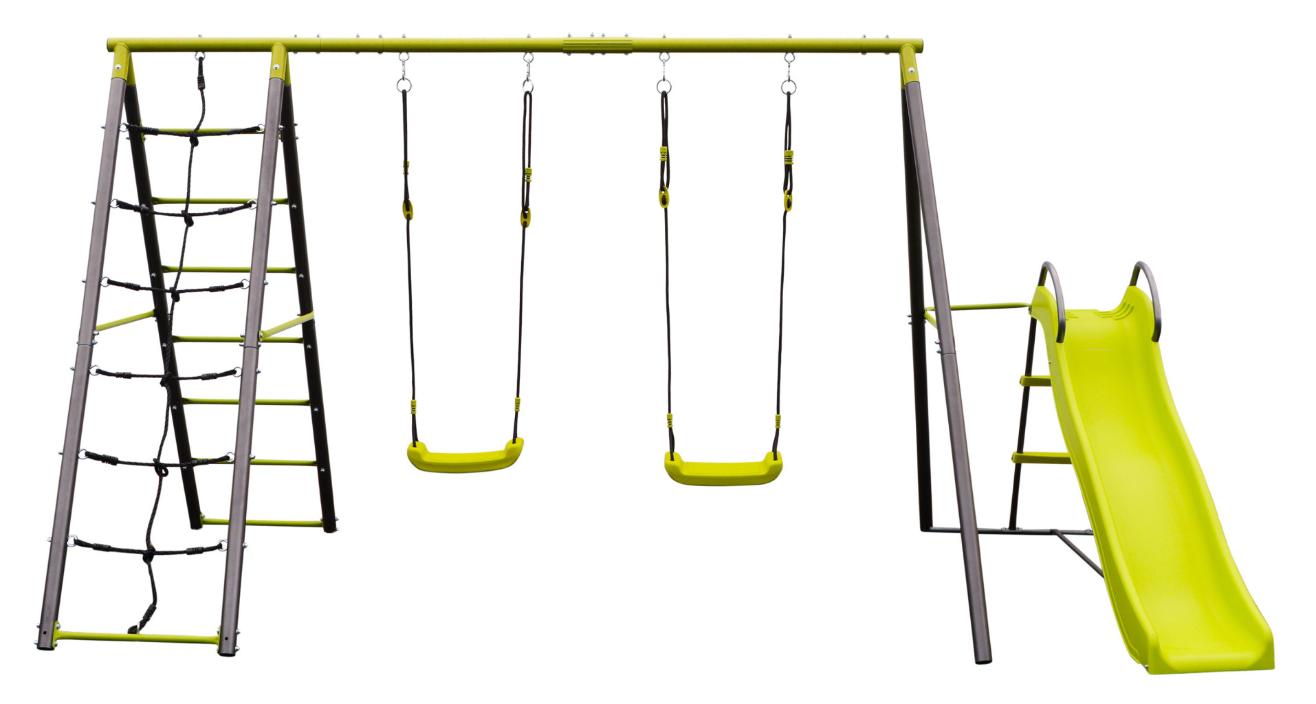 Houpací set G21 poskytuje dětem velkou možnost zábavy a venkovního vyžití. K sadě s rámem, žebříkem, lezeckou sítí, 2 houpačkami a skluzavkou můžete dokoupit i houpačku s opěrkou a bezpečnostní zábranou pro batole nebo houpací kruh.