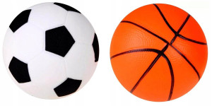- 2 dětské míče s motivy basketbalového a fotbalového míče