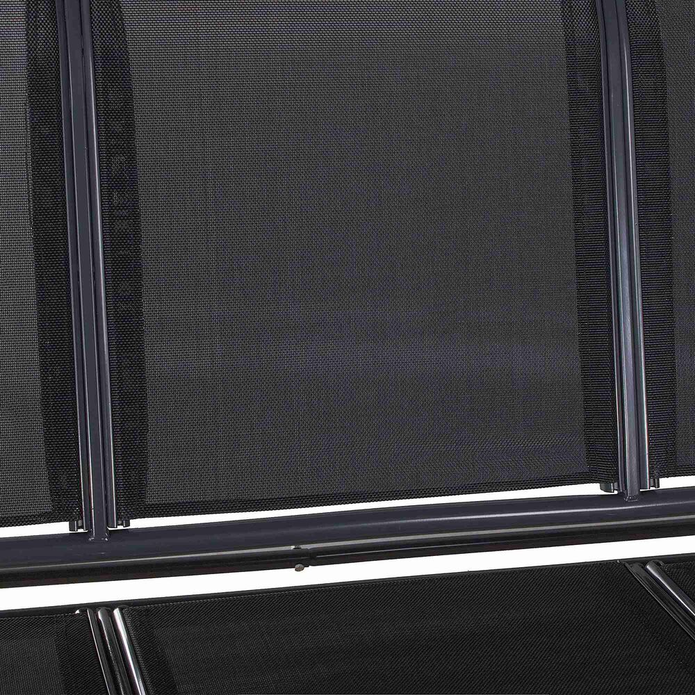 Pohodlná zahradní houpačka pro 3 osoby s prodyšným výpletem sedáku. Masivní kovová konstrukce, nastavitelný sklon stříšky, nosnost 220 kg.