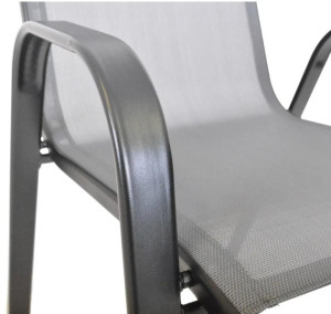Dotaz na produktZahradní kovové křeslo. Kovová konstrukce s látkovým sedákem a opěrnou částí. Díky volbě materiálu je křeslo lehce omyvatelné a jeho údržba není nijak náročná. Rozměry křesla jsou ( Š x V x H cm ) - 54 x 92 x 70 cm. Barevné provedení - černá konstrukce a tmavě šedá látka. Nosnost židle je 100 kg.