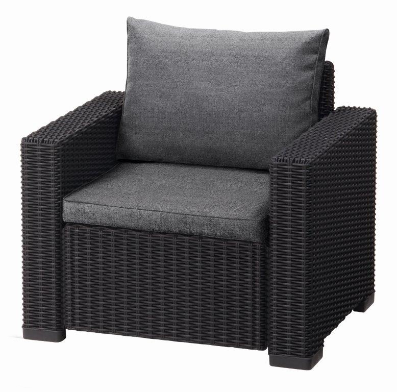 Dotaz na produkt Na splátky ještě dnes2 kusy zahradních křesel California v grafitové barvě značky Keter vás nadchnou svým nevšedním designem v imitaci přírodního ratanu. Konstrukce je přitom pevná a vydrží běžné zatížení venkovního provozu.