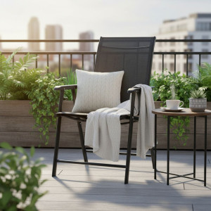 Křeslo disponuje skládací konstrukcí, která umožňuje snadné uskladnění a přepravu. Stabilní a pevná konstrukce zajišťuje bezpečné používání při každodenním posezení. Moderní černý design se hodí na terasu, balkon i zahradu.