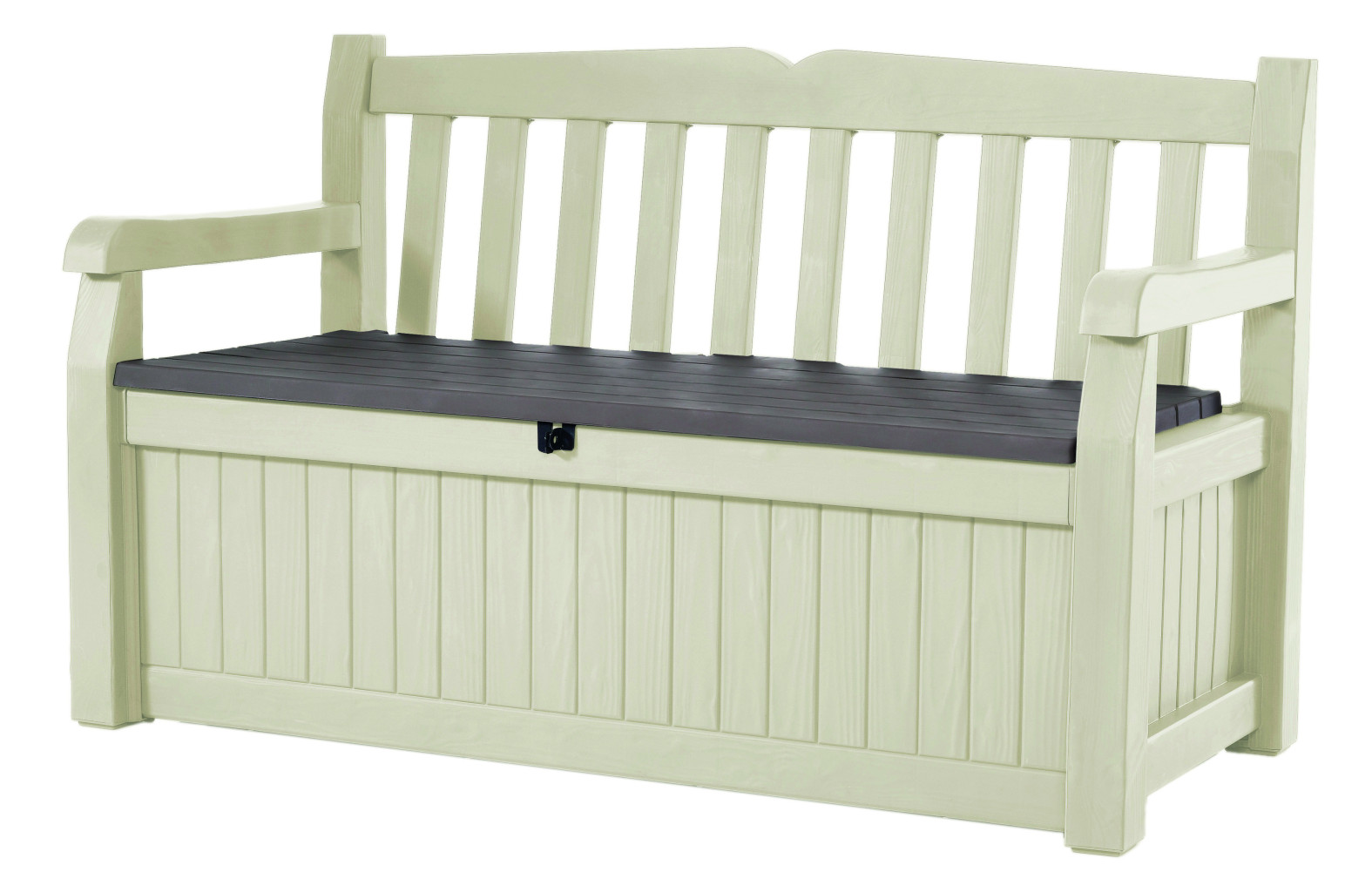 Lavice Keter Eden Garden Bench se však dá využít také jako praktický úložný prostor se štědrou kapacitou až 265 l. Ten najde své uplatnění při skladování podsedáků, polštářů, zahradního i dílenského nářadí či dětských hraček, o které tak už nebudete zakopávat při procházce po vašem dvoře či zahradě.