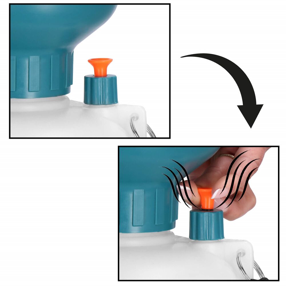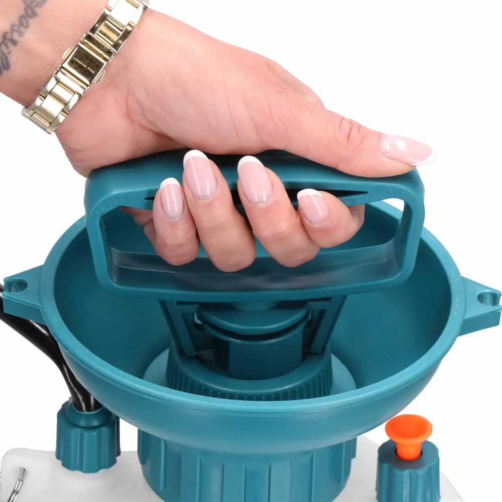 Díky rukojeti pumpy se zámkem je tlakování nádoby rychlé a bezpečné – otočením a zvednutím rukojeti aktivujete funkci pumpování. Po dokončení postřiku lze tlak snadno uvolnit oranžovým ventilem, což přispívá k bezpečnému a pohodlnému používání.