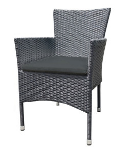 Zahradní křeslo z umělého ratanu. Díky volbě materiálu je křeslo lehce omyvatelné a jeho údržba není nijak náročná. Rozměry křesla jsou ( Š x V x H cm ) - 57 x 87 x 62 cm. Výška sedu je 42 cm. Jako bonus zdarma dodáváme včetně sedáku černé barvy, rozměr 46 x 47 x 3 cm (potah snímatelný pratelný). Konstrukce je kovová obalená kvalitním plastem připomínajícím ratan. Barevné provedení - antracit.