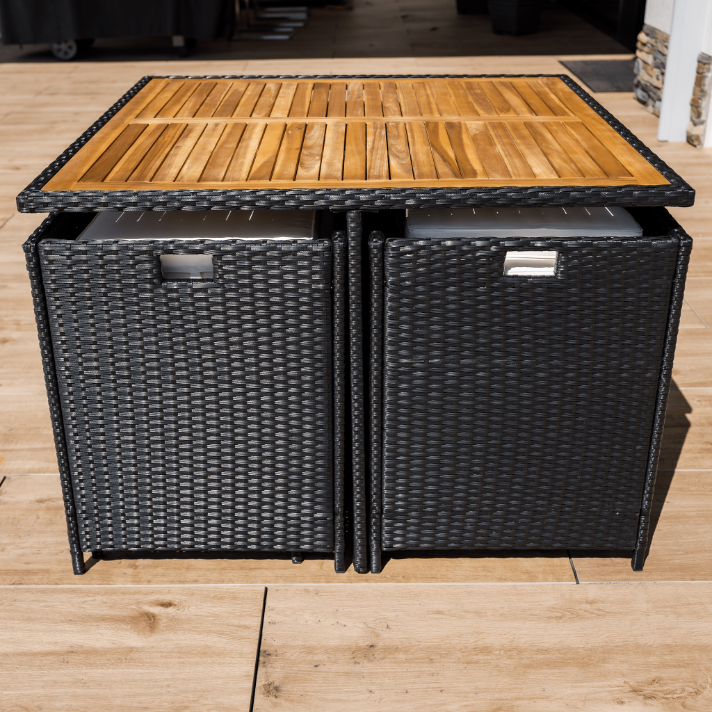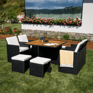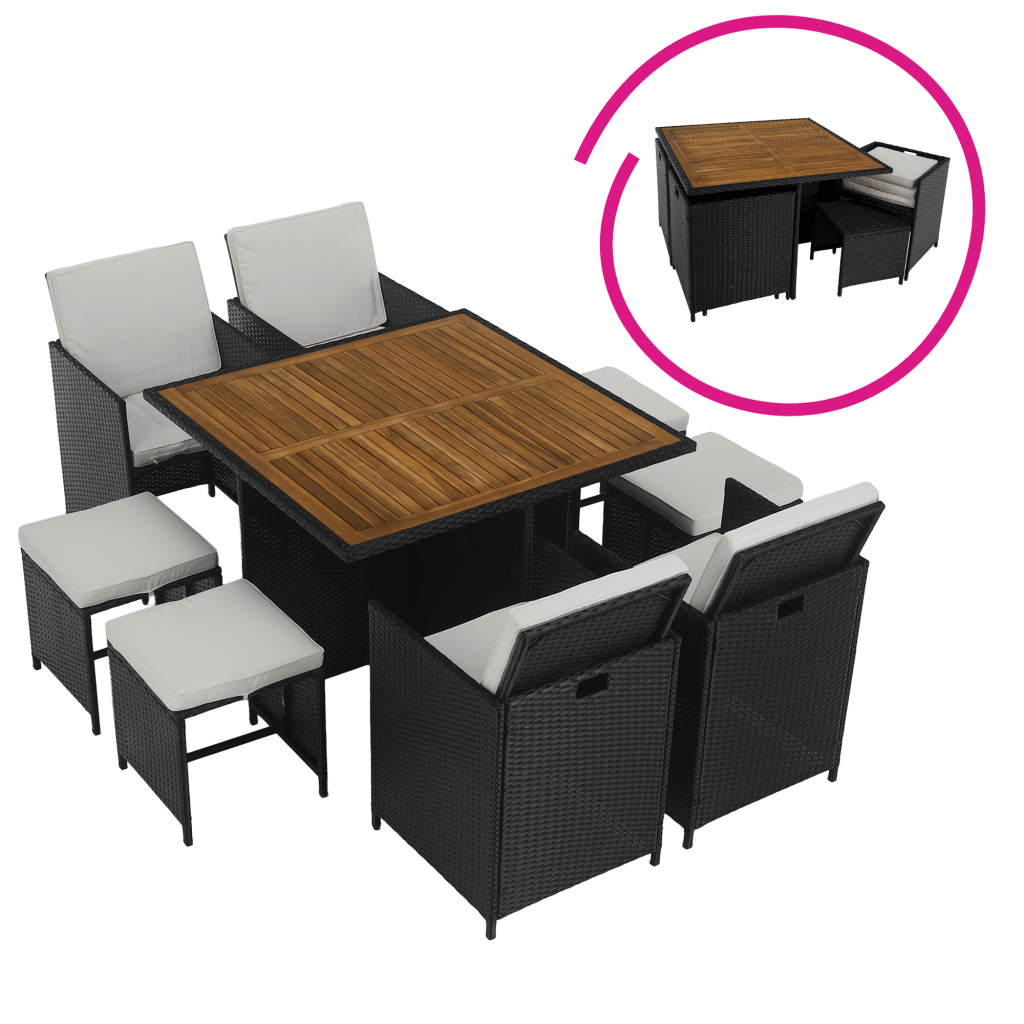 ÚvodZahradaZahradní nábytekZahradní sestavyZahradní ratanový set, akáciové dřevo, černá/krémová/přírodní, MELFORD