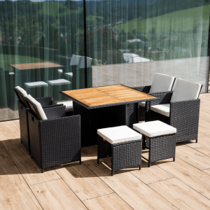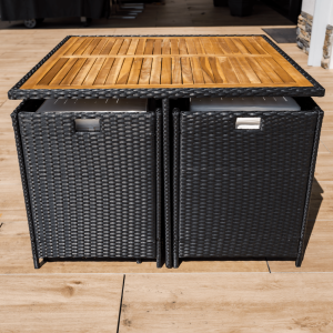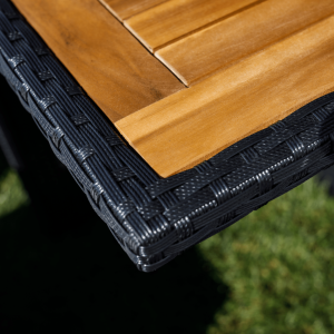 Zahradní ratanový set, akáciové dřevo, černá/krémová/přírodní, MELFORD