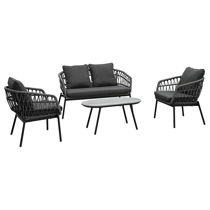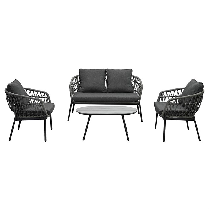 Dotaz na produkt Na splátky ještě dnesTato elegantní zahradní sedací souprava značky Autronic je perfektní volbou pro každou venkovní terasu či zahradu. Je vyrobena z odolného polyratanu v šedém odstínu, který dodává nábytku svěží a moderní vzhled. Konstrukce z kovu s práškovou úpravou v antracitové barvě zaručuje dlouhou životnost a stabilitu. Voděodolné polštáře poskytují maximální pohodlí a jsou ideální pro venkovní použití za každého počasí. Deska stolku je vyrobena z polywood materiálu, který má velmi dlouhou životnost a je odolný proti vnějším vlivům počasí.Tento set kombinuje styl a funkčnost, ať už chcete relaxovat nebo uspořádat venkovní posezení s přáteli. Souprava je navíc snadno udržovatelná a velmi praktická.