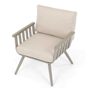 Zahradní set v béžovém provedení kombinuje pevný hliníkový rám s odolným polywoodem v dekoru divoký dub, který věrně napodobuje přírodní dřevo a snadno se udržuje. Součástí je praktický stůl s deskou z bezpečnostního skla, které zajišťuje stabilní a hladký povrch vhodný pro venkovní použití. Pohodlná křesla i dvoumístná pohovka mají ergonomicky tvarované opěradlo a sedáky s polstrováním v neutrální béžové barvě, které zvyšují komfort při posezení. Celý set je navržen s ohledem na stabilitu a dlouhou životnost, ideální pro relaxaci i společenské chvíle na zahradě či terase.