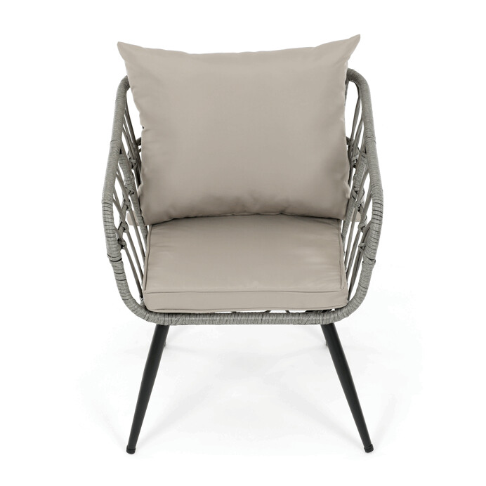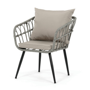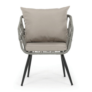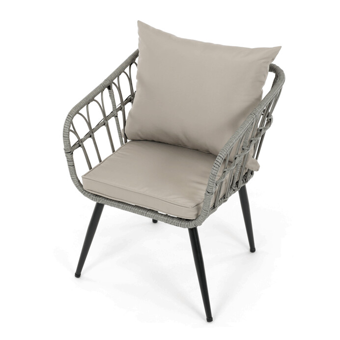 Zahradní sedací souprava 1+2+1+1 kombinuje moderní design s praktickými materiály vhodnými pro venkovní použití. Pevná kovová konstrukce v černé barvě zajišťuje stabilitu a dlouhou životnost, zatímco výplet z umělého ratanu dodává lehkost a přírodní vzhled. Sedáky a opěradla jsou potaženy šedou voděodolnou látkou, která se snadno udržuje a odolává vlivům počasí. Stolová deska z polywoodu je odolná vůči vlhkosti a mechanickému poškození, což ji předurčuje pro venkovní prostředí. Souprava je vybavena pohodlnými područky a ergonomicky tvarovanými sedáky, které podporují komfort při relaxaci na zahradě či terase.