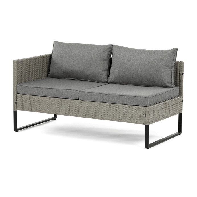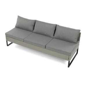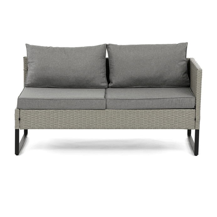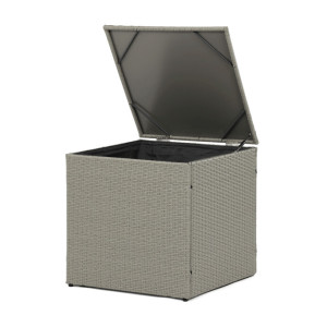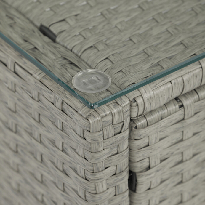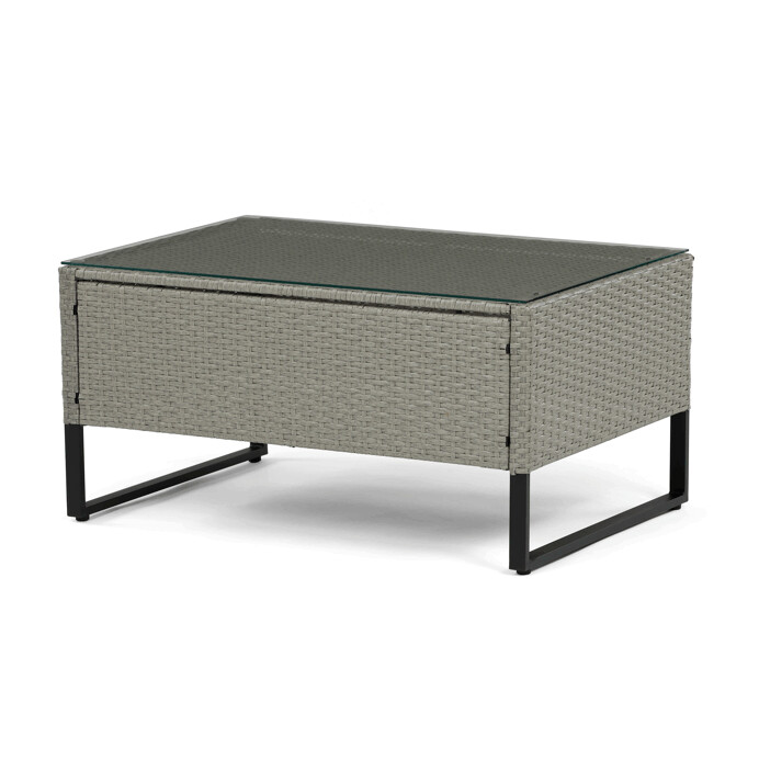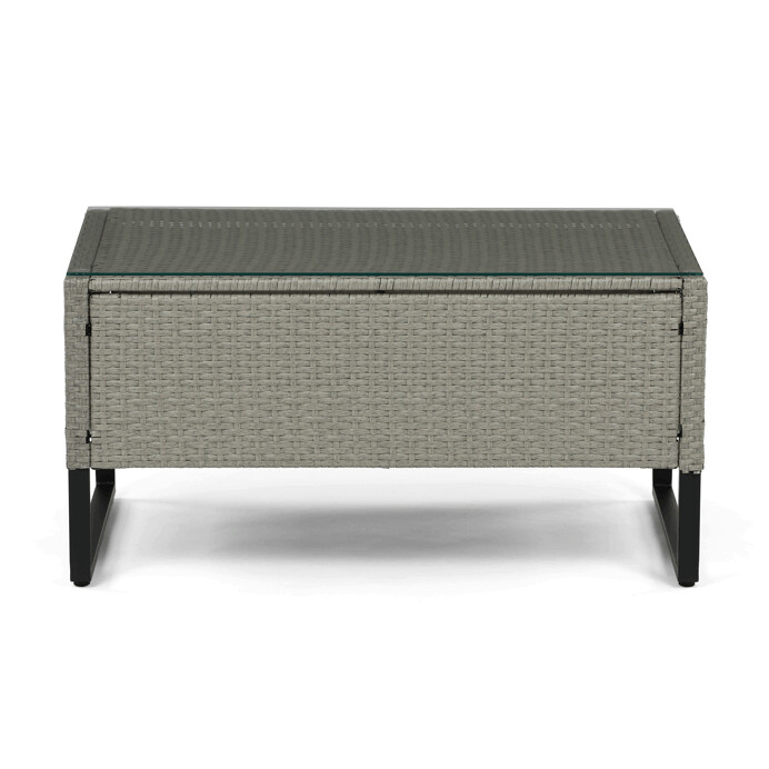 Zahradní sestava s úložným prostorem kombinuje pevnou kovovou konstrukci s kvalitním umělým ratanem v šedém odstínu, který je odolný vůči povětrnostním vlivům. Sedací části jsou čalouněné šedou voděodolnou látkou, která zajišťuje pohodlí i snadnou údržbu. Součástí sestavy je praktický konferenční stolek s deskou z tvrzeného skla, která je pevná a snadno omyvatelná. Úložný prostor integrovaný do sestavy umožňuje ukládání drobných předmětů a pomáhá udržet pořádek. Rozměry jednotlivých částí jsou navrženy pro komfortní posezení a sestava je vhodná pro relaxaci na zahradě či terase.