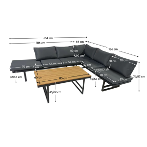 Rozměry pohovka (ŠxHxV): 254x186x76-83 cm