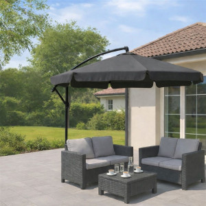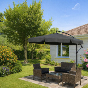 Zahradní slunečník 290 cm, grafitový SPRINGOS CASABLANCA GU0041 poskytuje dostatek stínu pro pohodlné posezení venku. Díky boční konstrukci nepřekáží uprostřed prostoru a umožňuje lepší využití místa pod slunečníkem.
