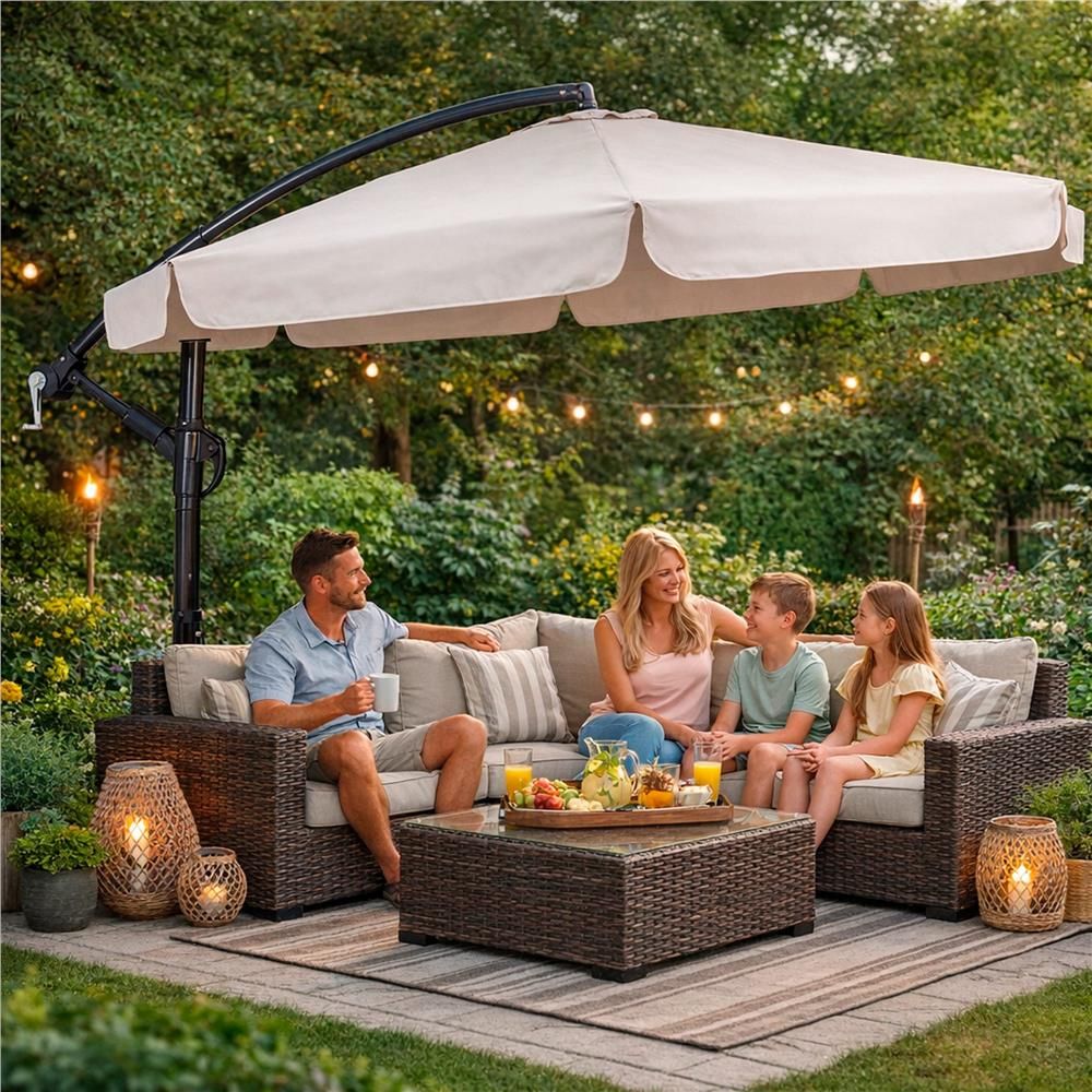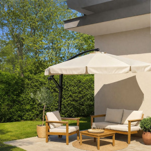 Zahradní slunečník 290 cm, krémový SPRINGOS MALTA GU0045 poskytuje dostatek stínu pro pohodlné posezení venku. Díky boční konstrukci nepřekáží uprostřed prostoru a umožňuje lepší využití místa pod slunečníkem.