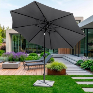Dotaz na produkt Na splátky ještě dnesNaklápěcízahradní slunečník o průměru 290 cm. Komfortní nastavení sklonu stříšky, nepromokavá tkanina s UV filtrem, horní odvětrávání pro optimální klima, stabilní kovová konstrukce, klikový mechanismus.