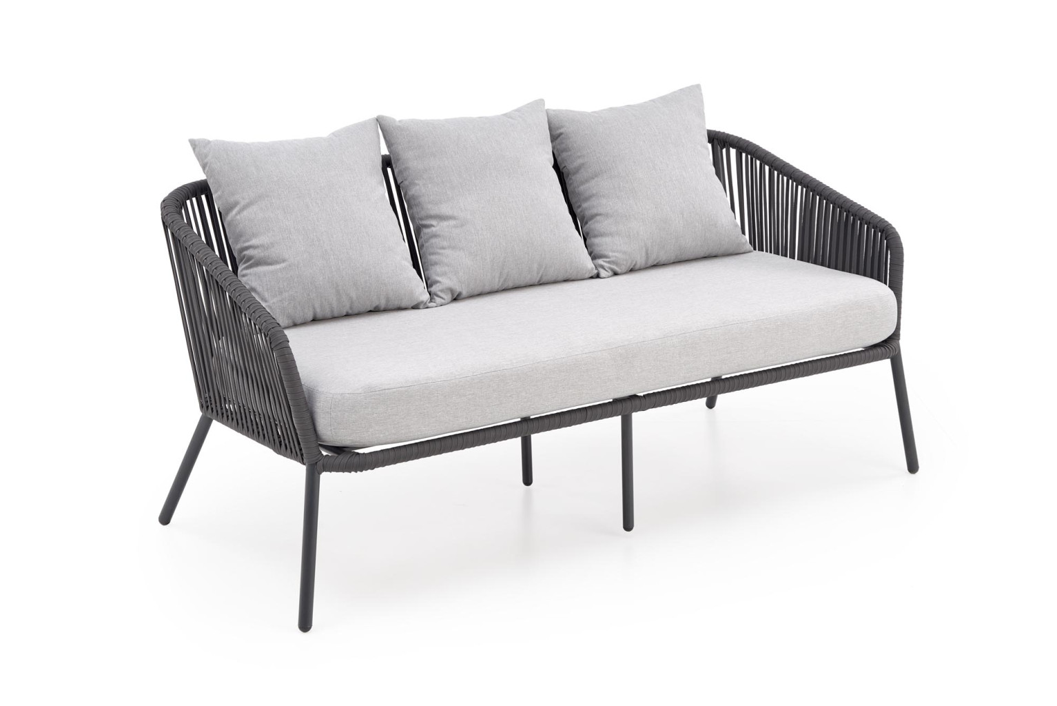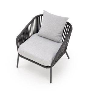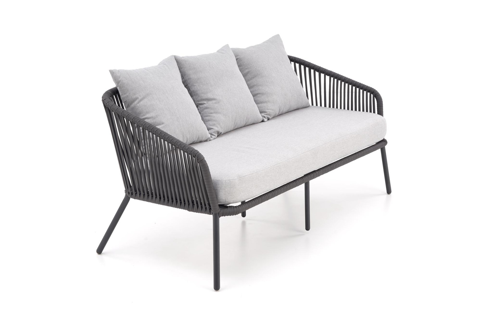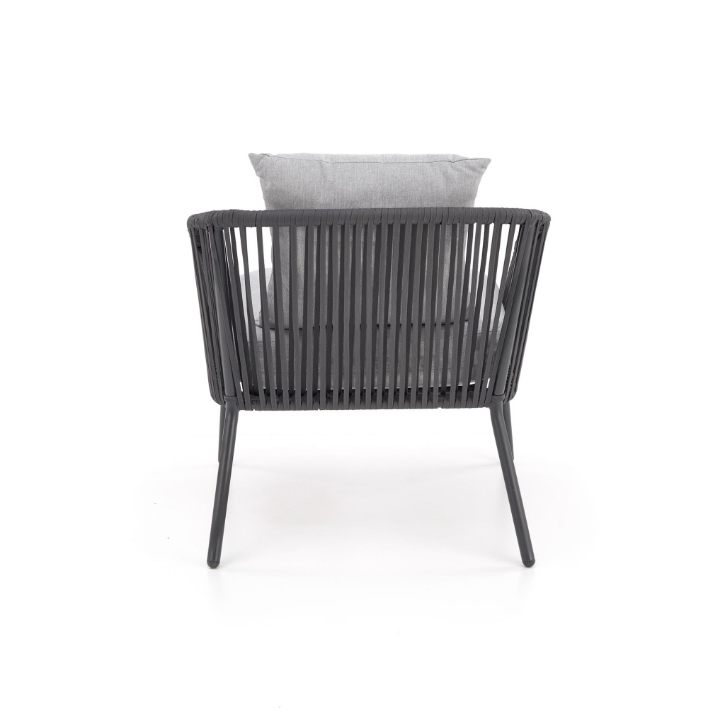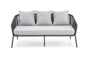 Dotaz na produkt Na splátky ještě dneszahradní sestava (pohovka + křeslo 2x + lavice), rozměry: 155/71/70/43 cm (pohovka), 71/71/70/43 cm (křeslo), 99/59/37 cm (lavička), materiál: práškově lakovaný hliník / sklo / lano / látka, barva: tmavě šedá - světle šedá