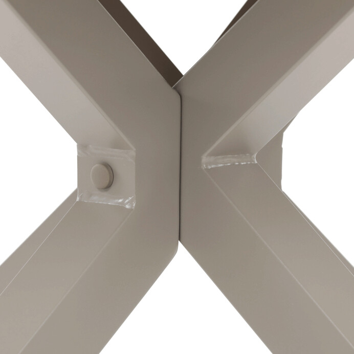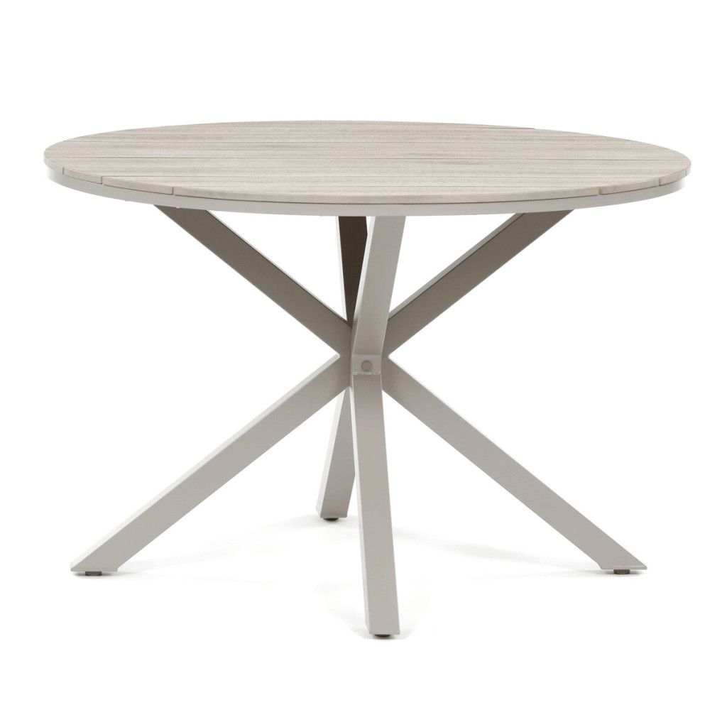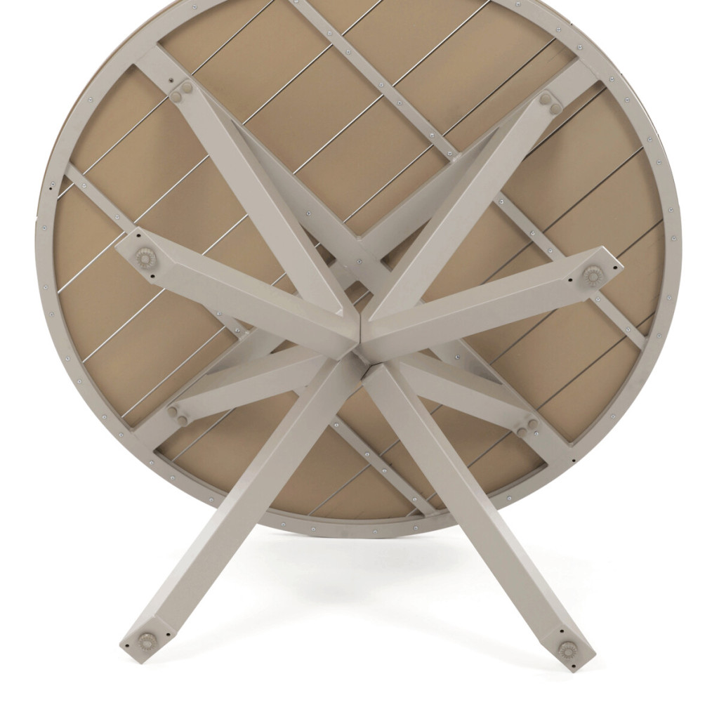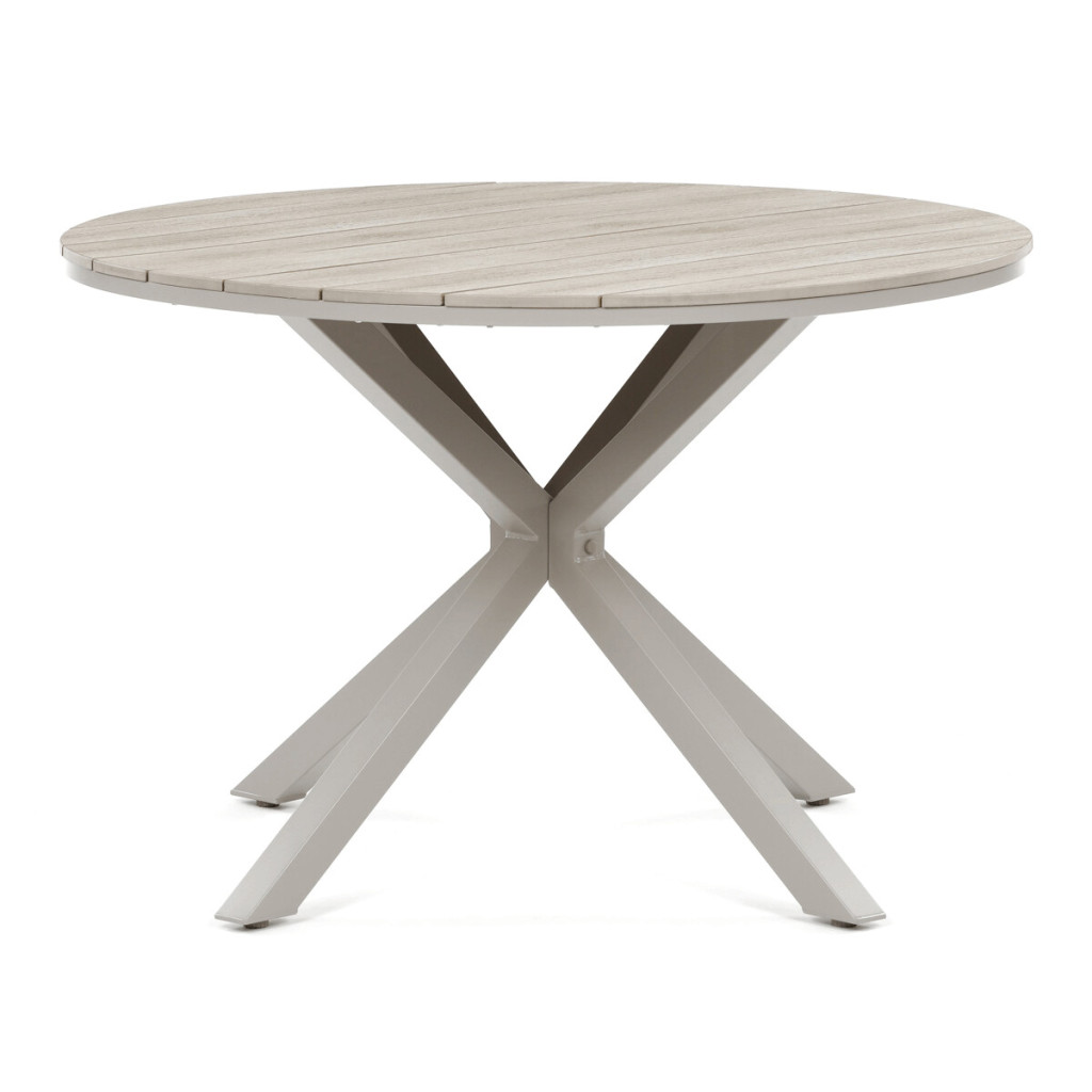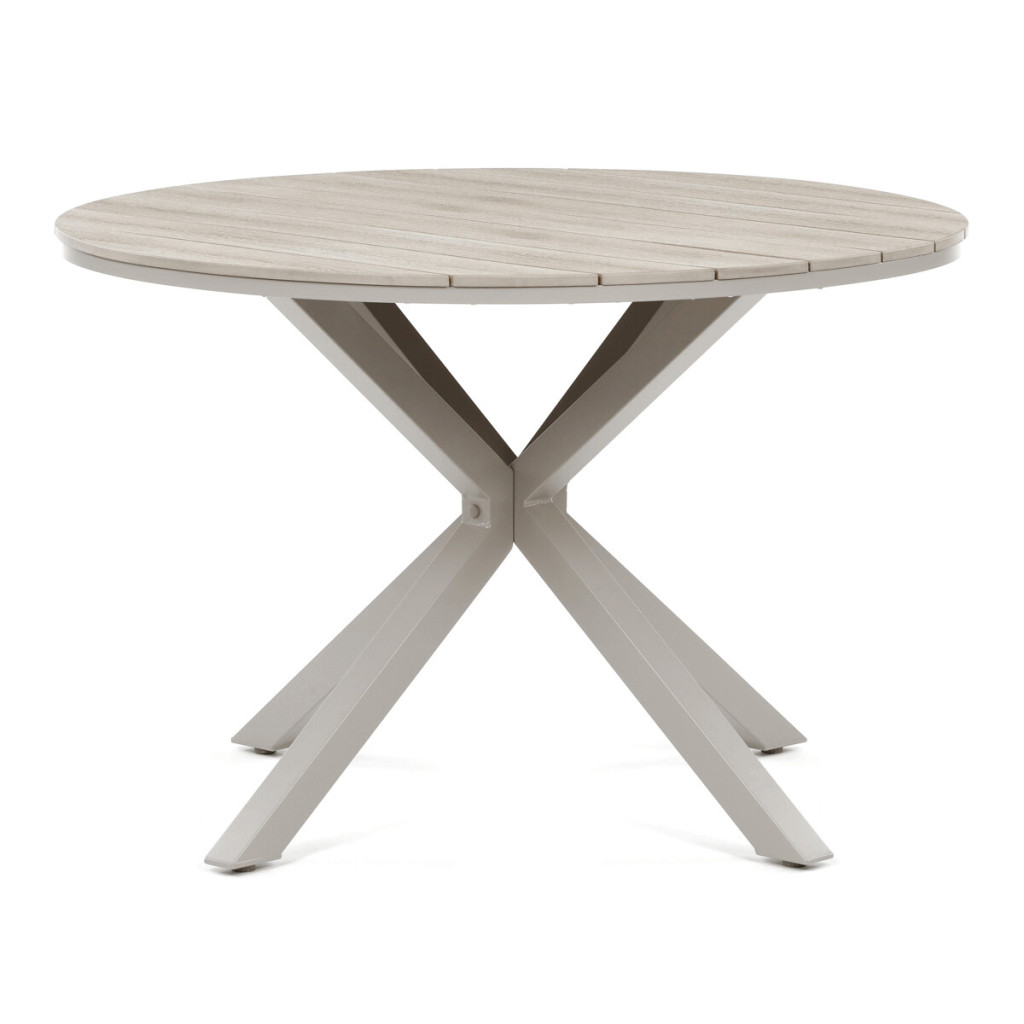 Zahradní stůl o rozměrech 110x75 cm kombinuje pevnou hliníkovou podnož s deskou z polywoodu v dekoru divoký dub, která nabízí odolnost vůči povětrnostním vlivům a snadnou údržbu. Béžové provedení desky doplňuje moderní a nadčasový design, který se hodí do různých venkovních prostor, od teras po zahrady. Stabilní čtyřnohá konstrukce zajišťuje bezpečné a pevné postavení stolu i na nerovném povrchu. Polywoodová deska věrně napodobuje strukturu dřeva, přičemž je odolná vůči vlhkosti a UV záření, což prodlužuje její životnost. Stůl je vhodný pro každodenní použití při venkovních setkáních a díky svému designu vytváří příjemné prostředí pro relaxaci i stolování.