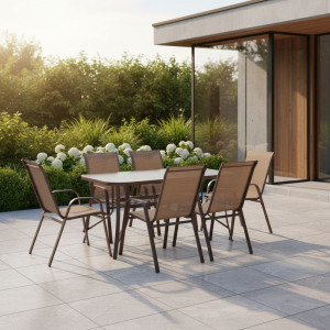 Zahradní stolek Springos Toscana je perfektním doplňkem na zahradu nebo terasu. Letní sobotní ráno, aromatická káva, vycházející slunce – tento kus nábytku vám umožní užít si bezstarostné chvilky. Obdélníkový tvar stolu nabízí dostatek místa pro 4-6 osob.