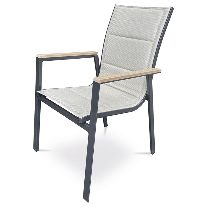 Zahradní židle značky Autronic je skvělou volbou pro stylové a pohodlné venkovní posezení. Její konstrukce je z odlehčeného hliníku, který zajišťuje nejen pevnost, ale také vysokou odolnost proti korozi, což oceníte při dlouhodobém používání venku. Sedák a opěradlo jsou potaženy kvalitním textilem s pěnovou výplní, která poskytuje maximální komfort.
