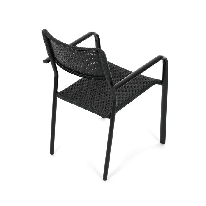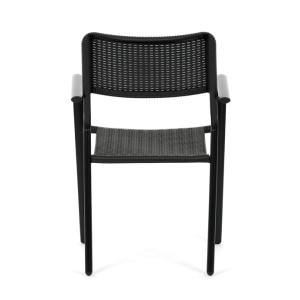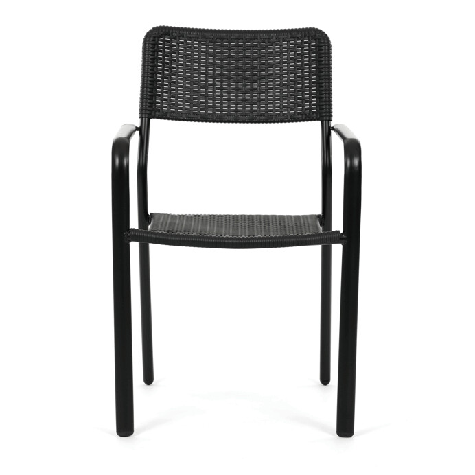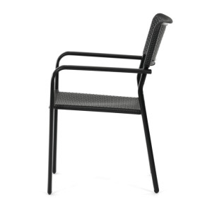 Dotaz na produktZahradní židle v černém provedení kombinuje pevný kovový rám s odolným plastovým sedákem a opěradlem, které jsou navrženy pro dlouhou životnost a snadnou údržbu. Díky stohovatelnému designu umožňuje efektivní skladování a úsporu místa. Područky zajišťují pohodlné opření rukou během posezení. Jednoduchý a praktický tvar židle se hodí do různých venkovních prostor, jako jsou terasy, zahrady nebo balkony.