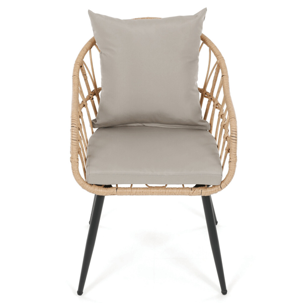 Moderní zahradní židle značky Autronic spojuje stylový design a funkčnost. Je vyrobena z kvalitního polyratanu v přírodní barvě, který zajišťuje odolnost vůči venkovním podmínkám a zároveň přidává židli příjemný přírodní vzhled. Pevná kovová konstrukce dodává stabilitu a spolu s moderním vzhledem se židle skvěle hodí na terasu, zahradu nebo balkon. Díky ergonomickému tvaru poskytuje pohodlné sezení, ideální pro relaxaci nebo posezení u stolu s přáteli. Polštář a 5 cm béžový sedák je součástí balení.