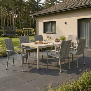 Elegantní zahradní židle značky Autronic je ideální volbou pro vaši terasu, balkon či zahradu. Její šedý design s výpletem z odolného polyratanu působí moderně a snadno se kombinuje s dalšími kusy venkovního nábytku. Díky pevnému kovovému rámu nabízí vysokou stabilitu i pohodlí při sezení. Materiál je nenáročný na údržbu, což oceníte při každodenním používání. Tato židle je skvělým řešením jak pro soukromé posezení, tak pro vybavení komerčních prostor, jako jsou kavárny nebo restaurace.