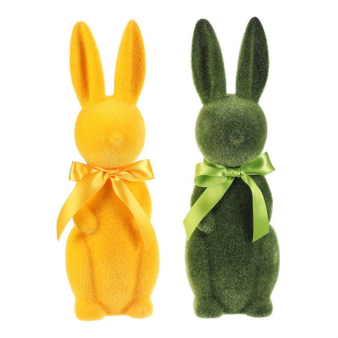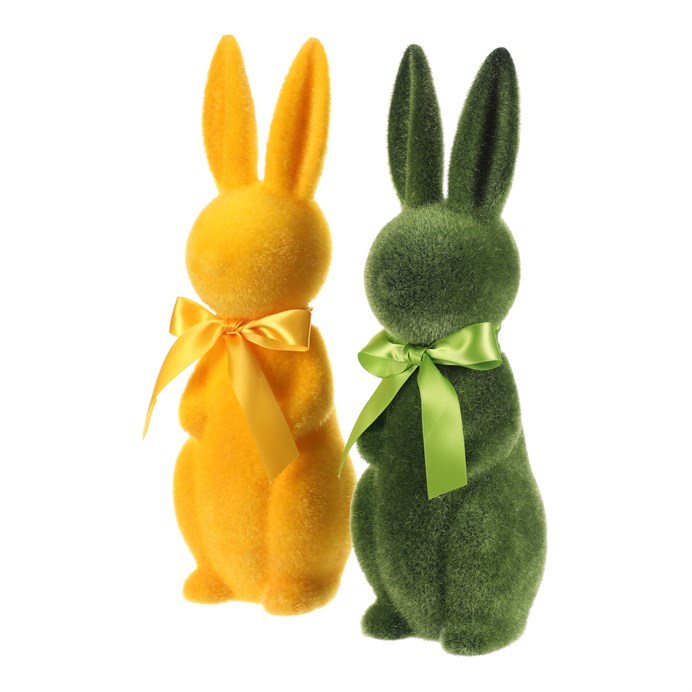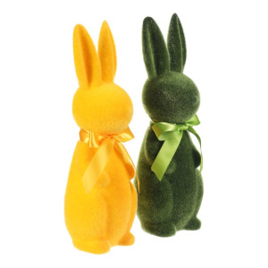 Dotaz na produktFigurka zajíce v semišovém vzhledu vyniká jemnou texturou a příjemnými přírodními odstíny žluté a zelené barvy. Každý kus je určen k postavení a zdobí ho saténová mašle v odpovídající barvě, která podtrhuje jarní atmosféru. Díky plastovému materiálu je figurka lehká a snadno se přemisťuje, což umožňuje flexibilní dekoraci interiérů i výloh. Je vhodná pro vytvoření tematických aranžmá během svátků nebo jako stálý dekorativní prvek v domácnosti či obchodních prostorách.