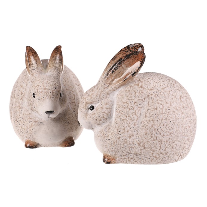Dotaz na produktKeramická figurka zajíce v krémovém odstínu představuje dekorativní prvek vhodný pro různé interiérové styly. Její zaoblené tělo a detailně zpracované uši a oči dodávají výrobku přirozený a jemný vzhled. Povrch s jemnou strukturou podtrhuje ruční zpracování a přispívá k autentickému dojmu. Velikost L umožňuje umístění na police, komody nebo stolky jako výrazný dekorativní akcent. Figurky jsou nabízeny v mixu dvou variant, cena je uvedena za jeden kus.