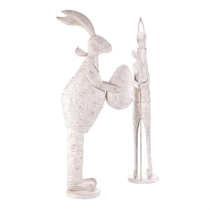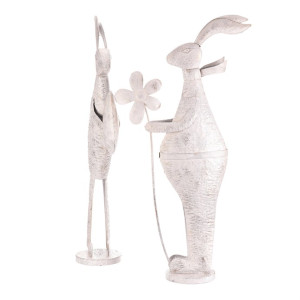 Dotaz na produkt Na splátky ještě dnesKovová figurka zajíce v bílé patině představuje dekorativní prvek vhodný pro umístění na poličku, komodu či stůl. Detailní zpracování zachycuje charakteristické rysy zvířete, přičemž každý kus má unikátní povrchovou úpravu s jemnou patinou. Výška a proporce ve velikosti L dodávají dekoraci výraznou přítomnost v interiéru i exteriéru. Zajíci jsou vyrobeni z pevného kovu, který je navržen pro dlouhou životnost a snadnou údržbu. Jsou určeni k postavení, což umožňuje jejich snadné přemístění a variabilní použití v různých prostorách.