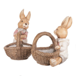 Dotaz na produkt Na splátky ještě dnesBlíží se Velikonoce a vy hledáte skutečně originální dekoraci pro oživení vašeho prostoru, která by zároveň i bavila své okolí? V tom případě budou tyto figurky z magneziové keramiky v podobě zajíce se zaječicí skvělou volbou. Oba jsou oděni do stylových oblečků a mají u sebe velký košík, jako by se chystali na houbové žně. Jejich originalita, veselé výrazy a nádherné zpracování z nich činí výjimečné dekorace na postavení. Lze je umístit na poličku, komodu, na schody, podlahu, ke květinám a další viditelná místa, kde je budou moci všichni obdivovat. Užívejte si svátky jara v obklopení těchto úžasných figurek, které rozveselí všechny okolo a prostoru dodají život a svěžest.
