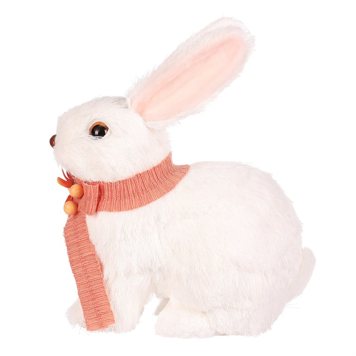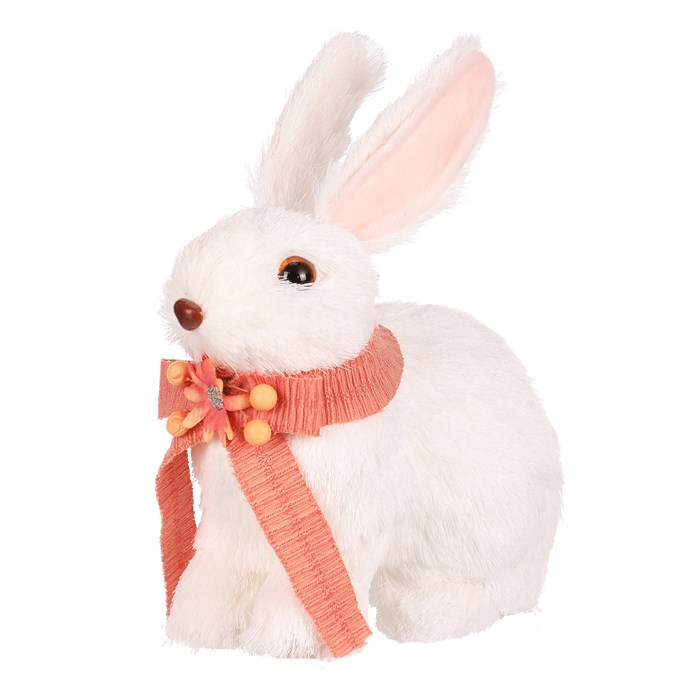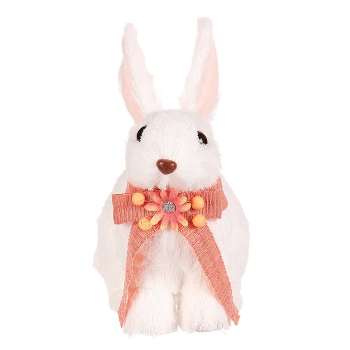 Dotaz na produktTento sedící zajíc s mašlí vyniká svým slaměným povrchem a čistě bílou barvou. Je lehký, půvabný a díky mašličce kolem krku působí slavnostně. Ideální jako hlavní dekorace pro jarní období a Velikonoce – vnese k vám domů kouzlo a svěžest těchto svátků.