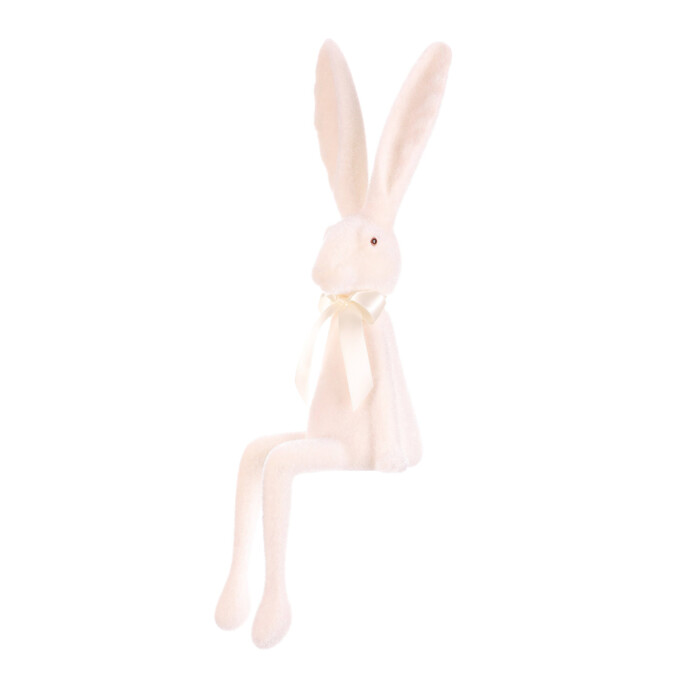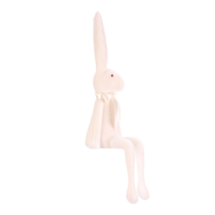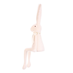 Dotaz na produkt Na splátky ještě dnesSedící figurka zajíce v bílé barvě je vyrobena z plastu se semišovým povrchem, který dodává jemnou a příjemnou texturu. Dlouhé uši a natažené nohy vytvářejí charakteristickou pozici, která působí dekorativně a zároveň hravě. Jemná mašle kolem krku podtrhuje celkový vzhled a přidává na vizuálním efektu. Figurku lze snadno umístit na poličku, komodu nebo parapet, kde vynikne jako stylový doplněk interiéru. Díky lehkému materiálu je manipulace jednoduchá a umožňuje flexibilní dekorování.