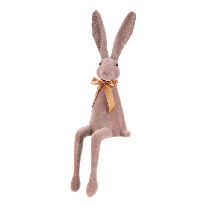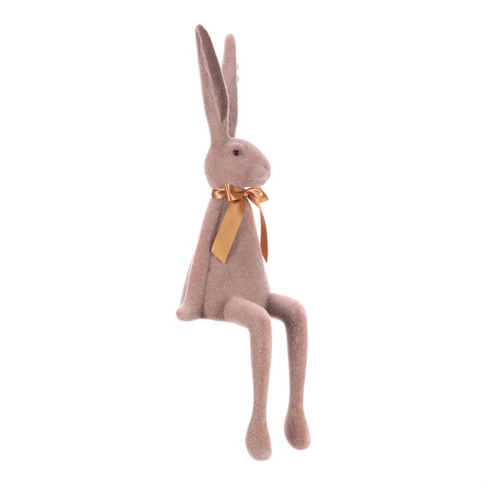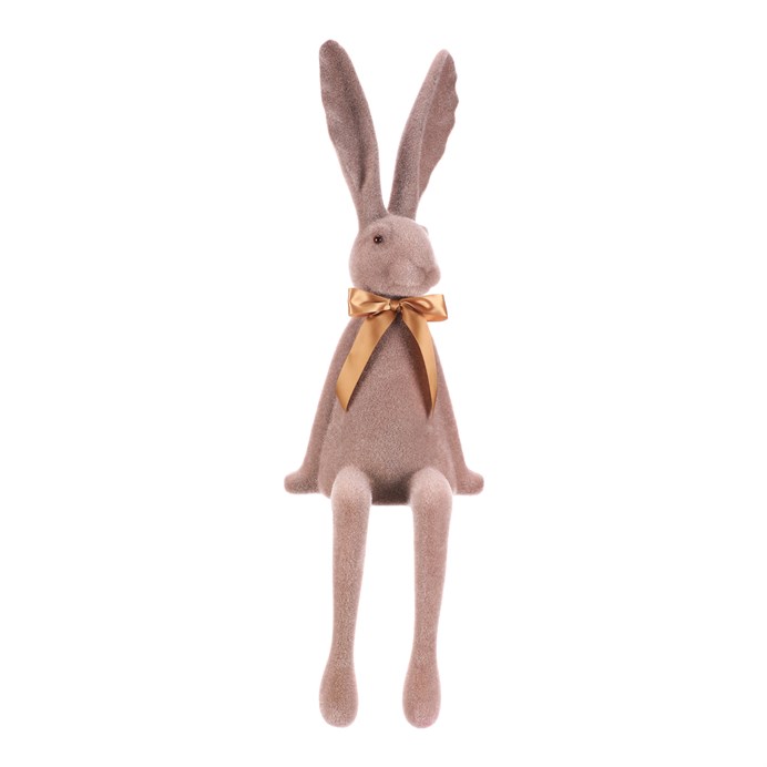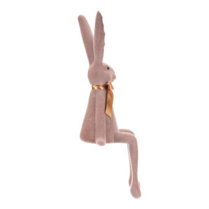 Dotaz na produkt Na splátky ještě dnesSedící figurka zajíce v hnědém semišovém provedení z plastu přináší do interiéru hravý a jemný dekorativní prvek. Dlouhé uši a natažené nohy dodávají figurce charakteristickou pozici, která ji činí výraznou součástí prostoru. Zlatavá mašle kolem krku podtrhuje její styl a přidává na vizuálním efektu. Je určena k umístění na rovný povrch, kde vynikne jako originální doplněk do domácnosti nebo komerčních prostor. Povrch se snadno udržuje a materiál je navržen pro dlouhou životnost.