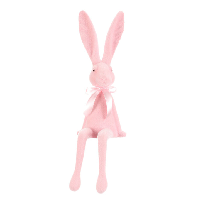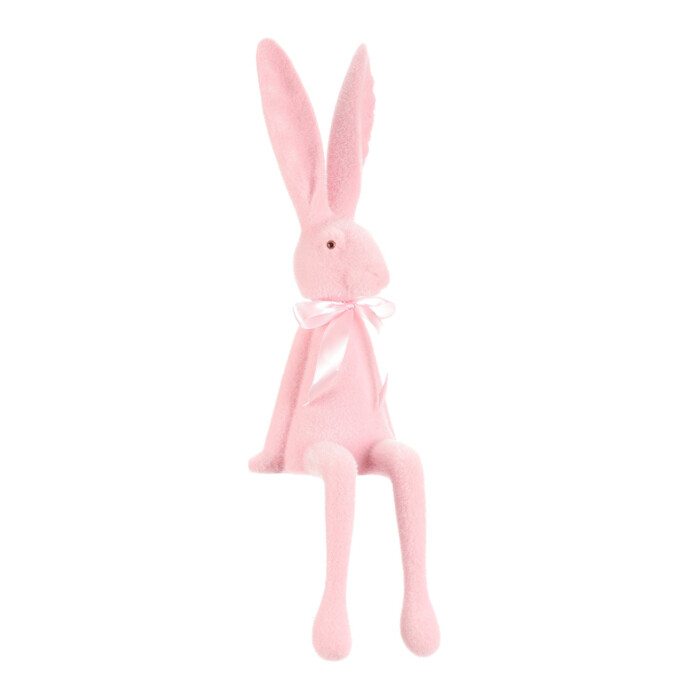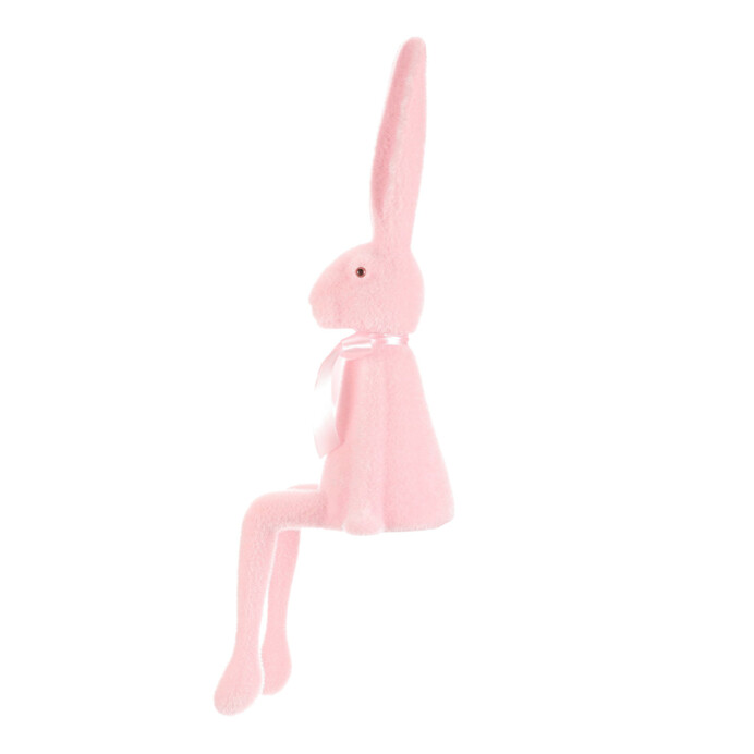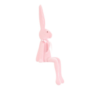 Dotaz na produkt Na splátky ještě dnesSedící figurka zajíce v jemně světle růžovém provedení je vyrobena z plastu se semišovou úpravou povrchu, která dodává příjemnou texturu. Dlouhé uši a natažené nohy vytvářejí charakteristickou pozici, která působí hravě a dekorativně. Ozdobená je jemnou saténovou mašlí kolem krku, což podtrhuje její něžný vzhled. Je určena k umístění na rovný povrch, kde vynikne jako originální doplněk interiéru, zejména v dětských pokojích nebo jarních aranžmá.