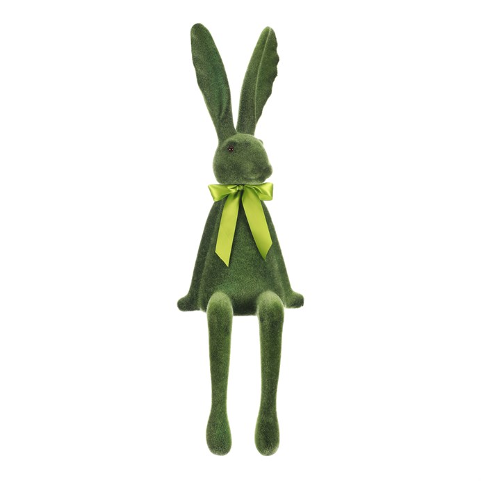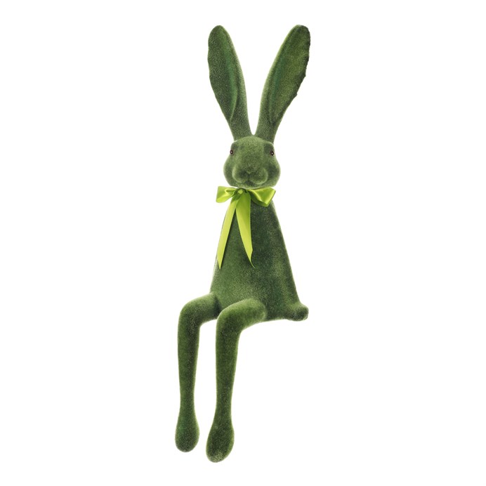 Dotaz na produkt Na splátky ještě dnesSedící figurka zajíce v zeleném semišovém provedení přináší do interiéru hravý a přírodní prvek. Je vyrobena z plastu s jemnou texturou připomínající semiš, která dodává dekoraci měkký vizuální efekt. Zajíc je ozdoben zelenou mašlí kolem krku a díky své pozici je vhodný pro umístění na poličku, parapet nebo komodu. Je navržen pro snadné posazení a oživení prostoru v jarním i celoročním dekorování.
