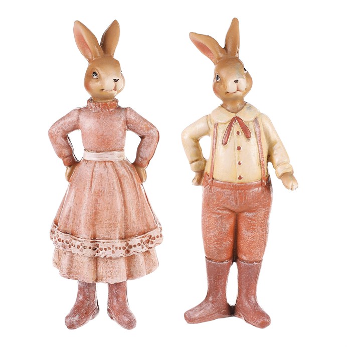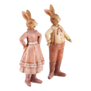 Dotaz na produkt Na splátky ještě dnesTato roztomilá keramická figurka zajíce a zaječice přináší do vašeho domova úsměv a pohodu. Zaječice v šatech a zajíc ve slušivém obleku, oba s veselými obličeji, dodají prostoru šmrnc a radost. Skvělé na stůl, poličku nebo komodu, kde vnesou do vašeho interiéru špetku zábavy a radosti.