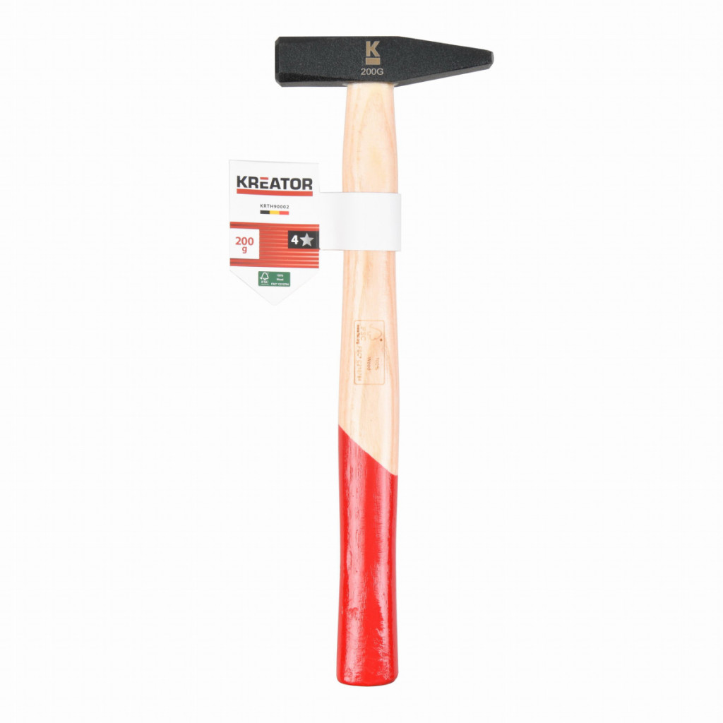 Dotaz na produktToto kladivo pro zámečníky KRTH90002 z naší řady Kreator váží 200 g a je nezbytností pro každého kutila. Kladivo je vybaveno ergonomickou rukojetí o délce 260 mm a je vyrobena ze dřeva s certifikací FSC(R).