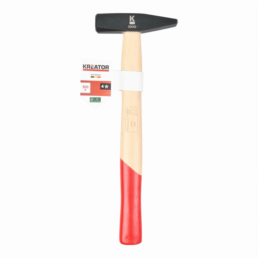 Dotaz na produktToto kladivo pro zámečníky KRTH90003 z naší řady Kreator váží 300 g a je nezbytností pro každého kutila. Kladivo je vybaveno ergonomickou rukojetí o délce 275 mm a je vyrobena ze dřeva s certifikací FSC(R).