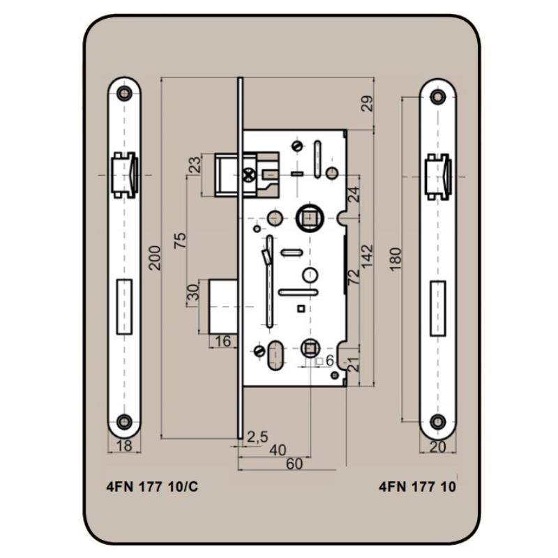 • zámek bez převodu, vhodný do dveří, které nemají zvýšený nárok na bezpečnost. Závora se ovládá ořechem závory se čtyřhranným otvorem 6 mm. Zámek je možné měnit na levý nebo pravý pootočením střelky zámku o 180°