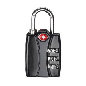 Černý bezpečnostní visací zámek na 3místný číselný kód vhodný pro cestování letadlem.