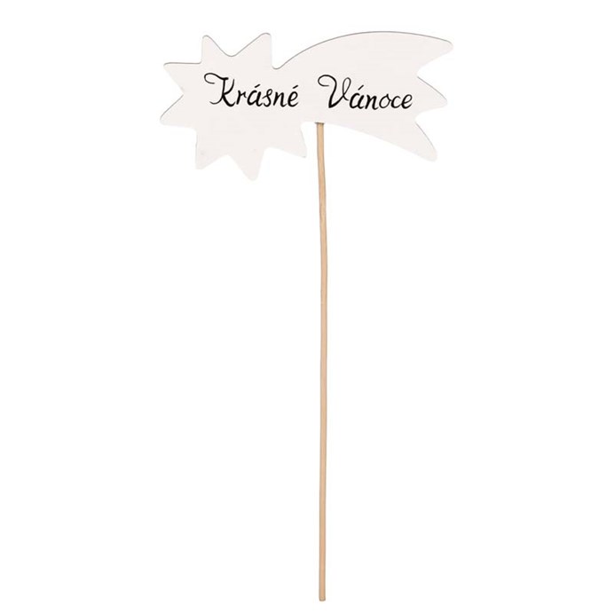 Dotaz na produktPředstavte si, jak roztomilé budou vaše vánoční dekorace, doplněné touto dřevěnou cedulkou "Krásné Vánoce" na špejli ve tvaru komety. Díky své formě zápichu lze tyto cedulky snadno začlenit do různých částí vánoční výzdoby. S touto drobnou přízdobou dodáte vašim vánočním dekoracím ten správný vánoční nádech a vytvoříte tak domov plný radosti a pohody. V jednom balení jich najdete hned 12, přičemž uvedená cena je za jeden kus.