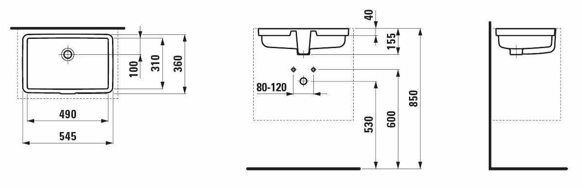 Zápustné umyvadlo Laufen Living 49x31 cm bez otvoru pro baterii H8124310001551